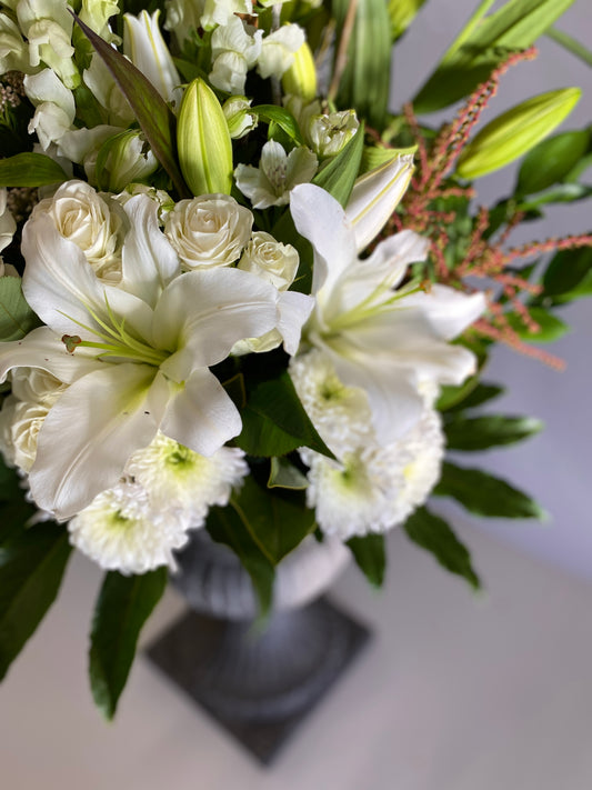 During times of loss, let Tholsie & Co. help you express your deepest condolences with our thoughtfully designed funeral and sympathy arrangements. Each creation is crafted with care, reflecting the dignity and grace your loved one deserves. From elegant wreaths to delicate sympathy bouquets, our floral tributes provide comfort to those who mourn and beautifully honour the memory of those who have passed.