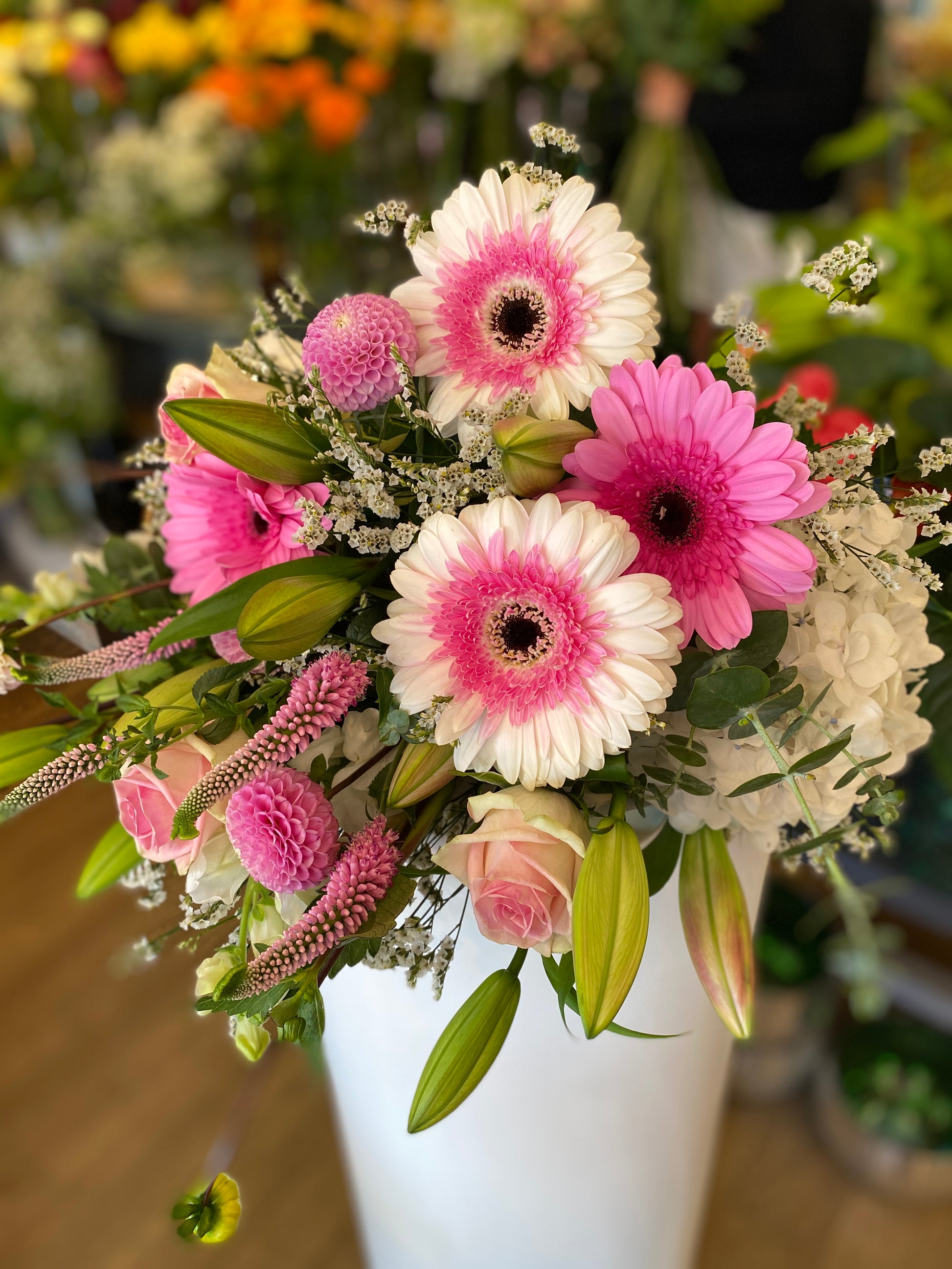 A seasonal selection of perfectly pink and white blooms and complementary foliage.