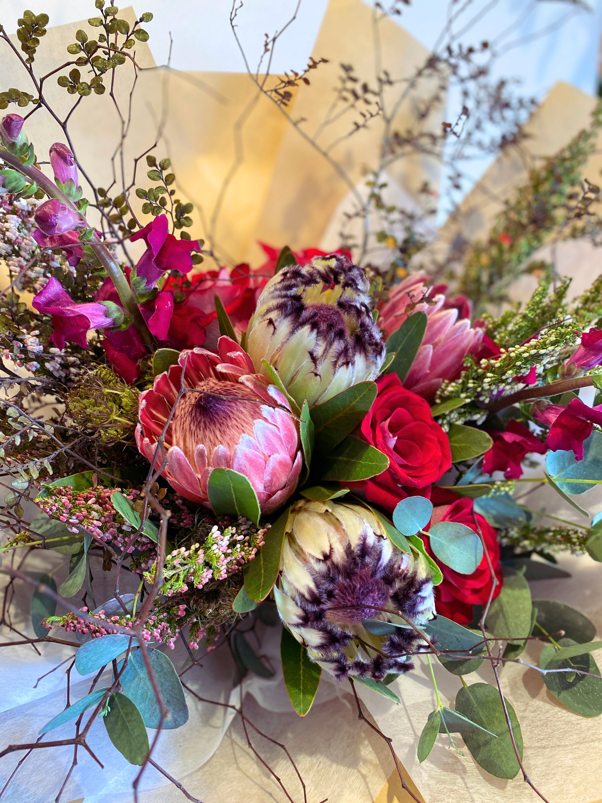All our bouquets are water-wrapped for freshness and elegantly gift wrapped, accompanied by a handwritten card containing your message.