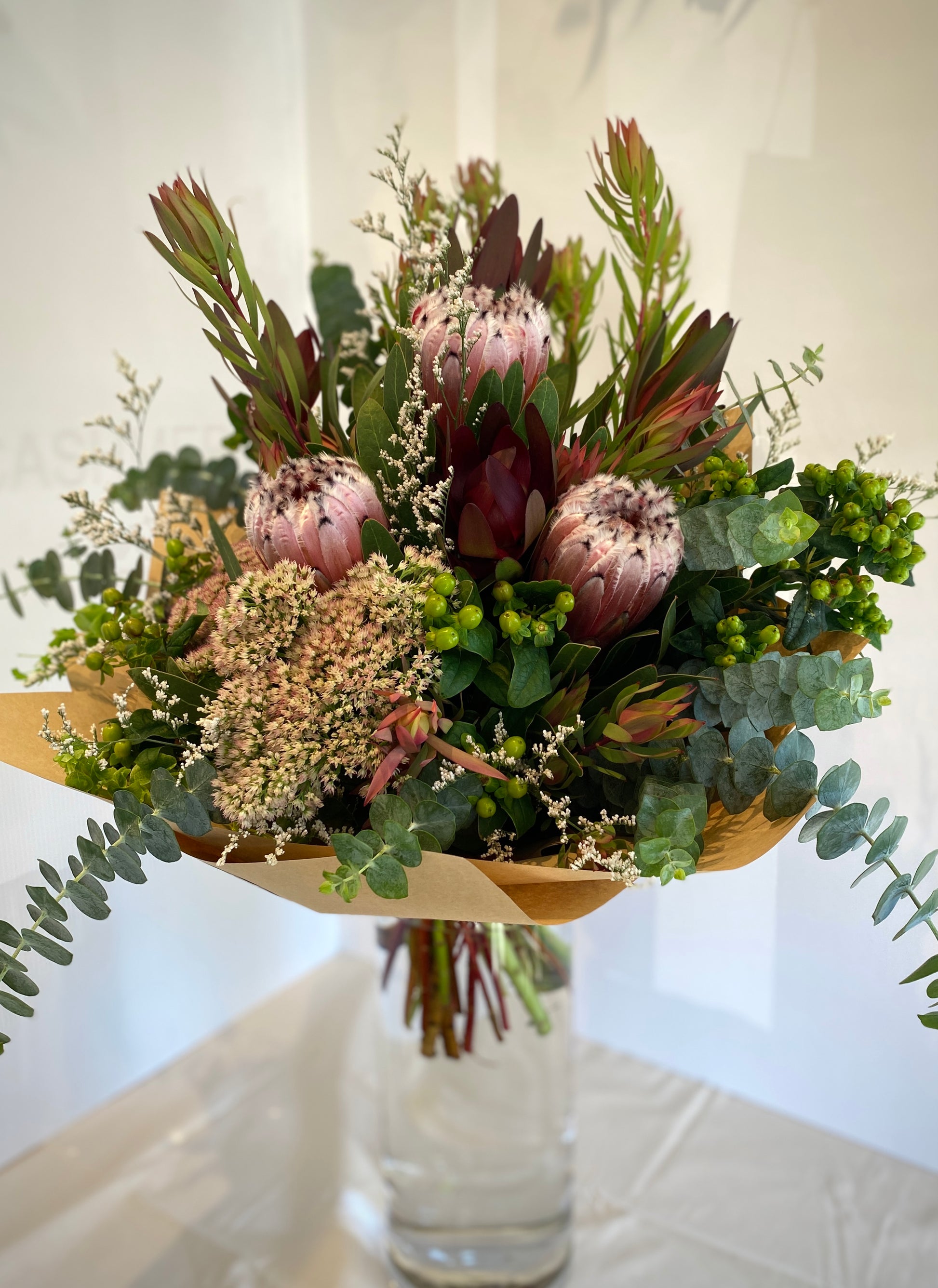A seasonal selection of long-lasting, rustic blooms and complementary foliage.