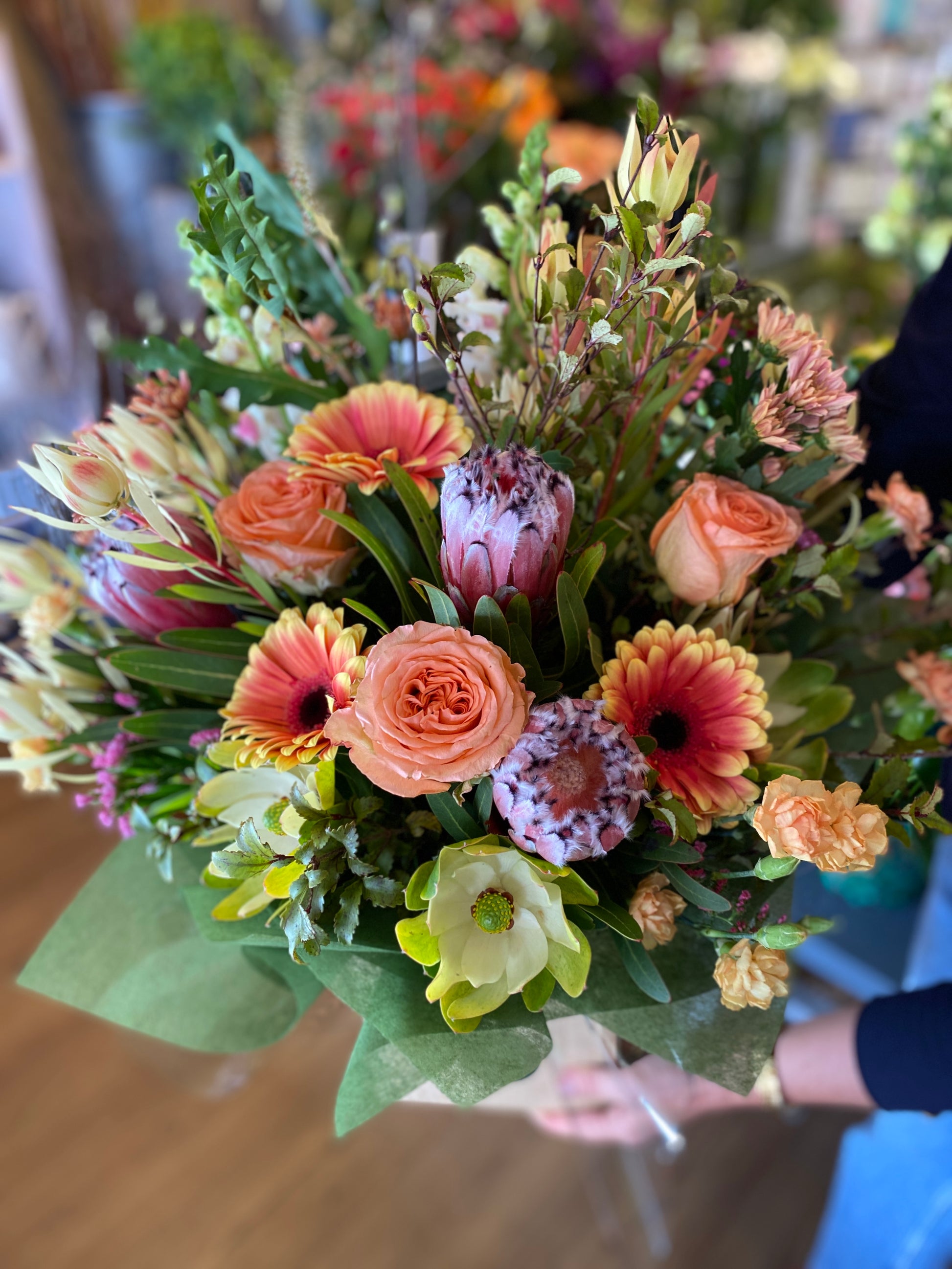Please note: Our product images serve as examples only. Due to seasonal variations, certain blooms may be substituted with equally stunning alternatives. The overall aesthetic and value of the bouquet will remain consistent.